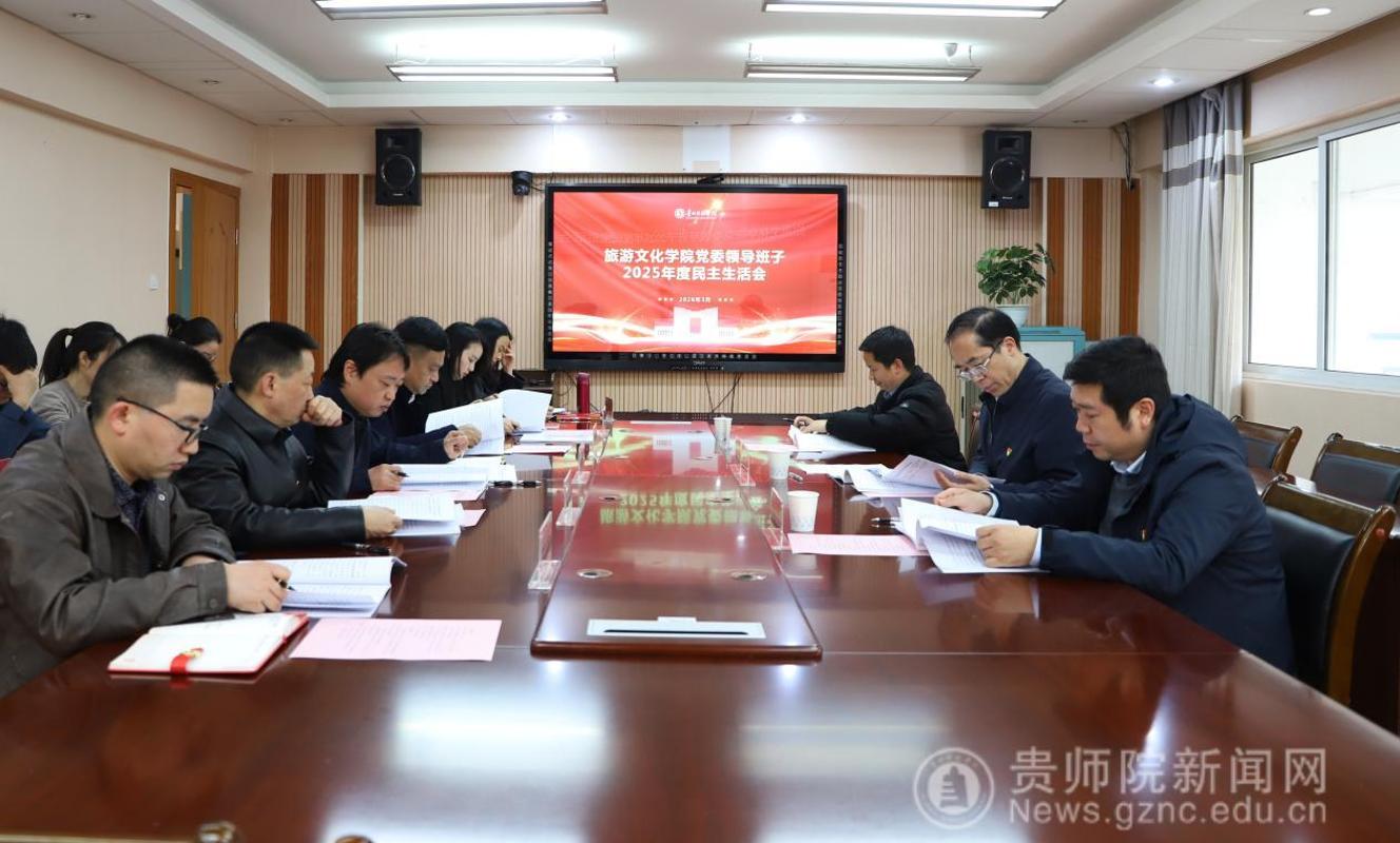3月19日下午,旅游文化学院党委在学院会议室召开2025年度民主生活会。校党委书记战勇到会指导并作点评讲话,校党委第一督导组有关同志到会指导。学院党委书记冯建国主持会议,学院党委领导班子全体成员参会,学院院长李乐京及有关人员列席会议。