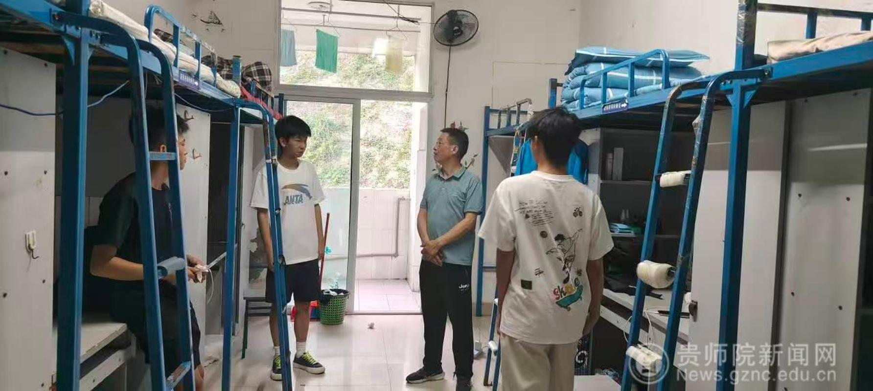 秋风送温暖,关怀沁人心。为切实掌握新生住宿实况,助力新生快速融入大学生活,9月4日下午,旅游文化学院薛书记以及新生辅导员张坤老师走进新生寝室,围绕大学集体生活、筑牢学生安全防范等话题与新生进行了交流。