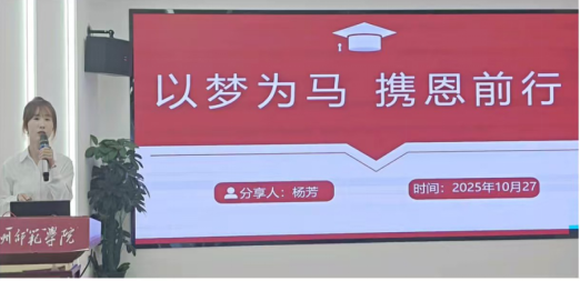 随后,由我院本年度获得国家奖学金的同学分别做经验分享。她们用自己的经历告诉同学们:青春不仅要有梦想,更要有为梦想奋斗的勇气,每一次努力不一定会成功,但每一次尝试都是向前的一大步,无奋斗,不青春,在这个充满无限可能的年龄,我们应该努力追求自己的梦想和目标,以奋斗的姿态激扬青春,一起在未来的道路上书写属于我们的精彩篇章。